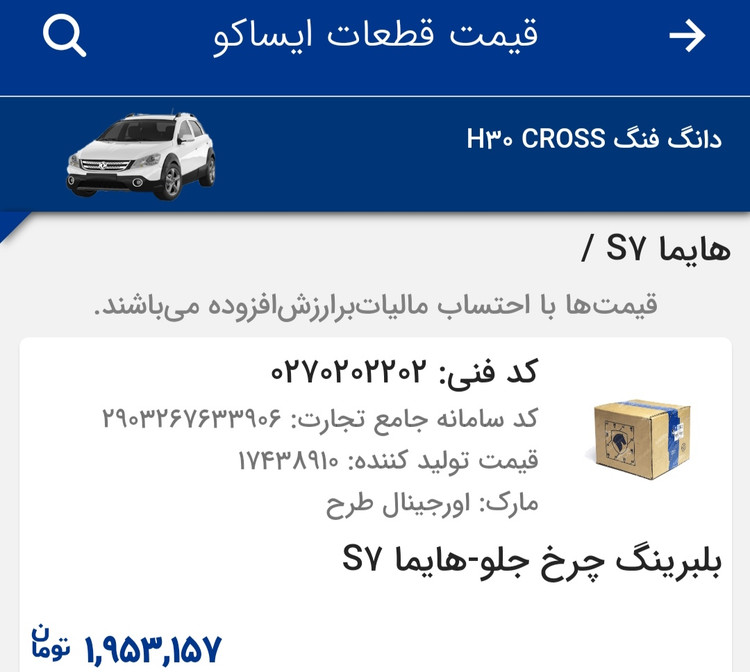 بلبرینگ چرخ جلوی هایماs7 برند شرکت خودروسازی چینی که توسط شرکت ایران خودرو وارد شده و با لیبل ایساکو به فروش میرسد