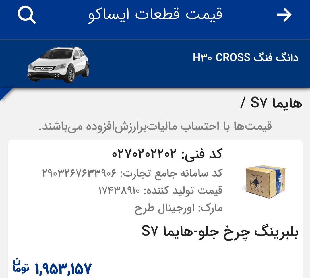 بلبرینگ چرخ جلوی هایماs7 برند شرکت خودروسازی چینی که توسط شرکت ایران خودرو وارد شده و با لیبل ایساکو به فروش میرسد